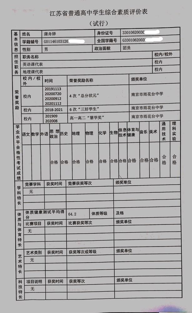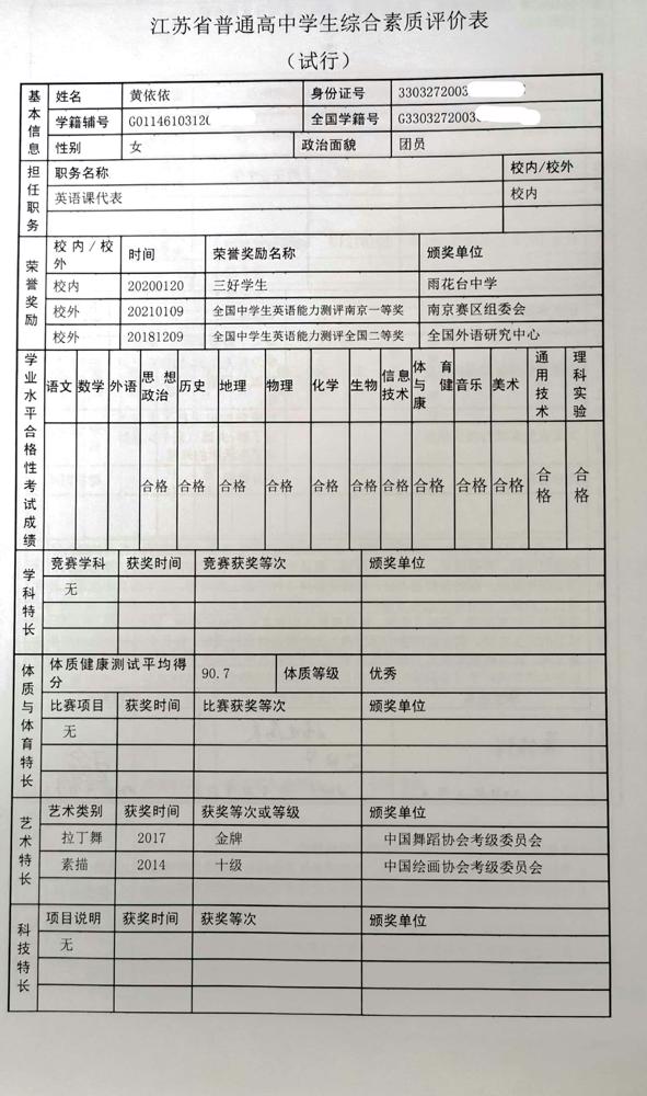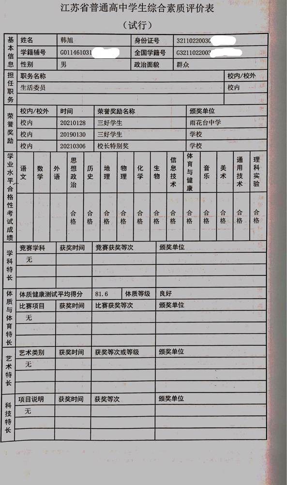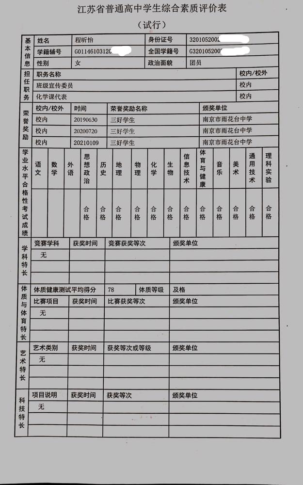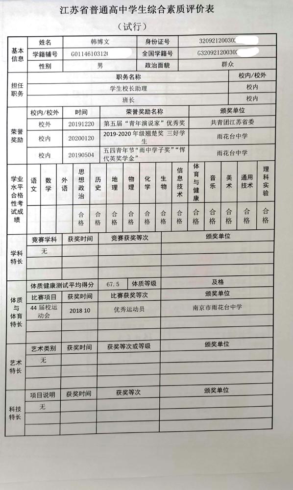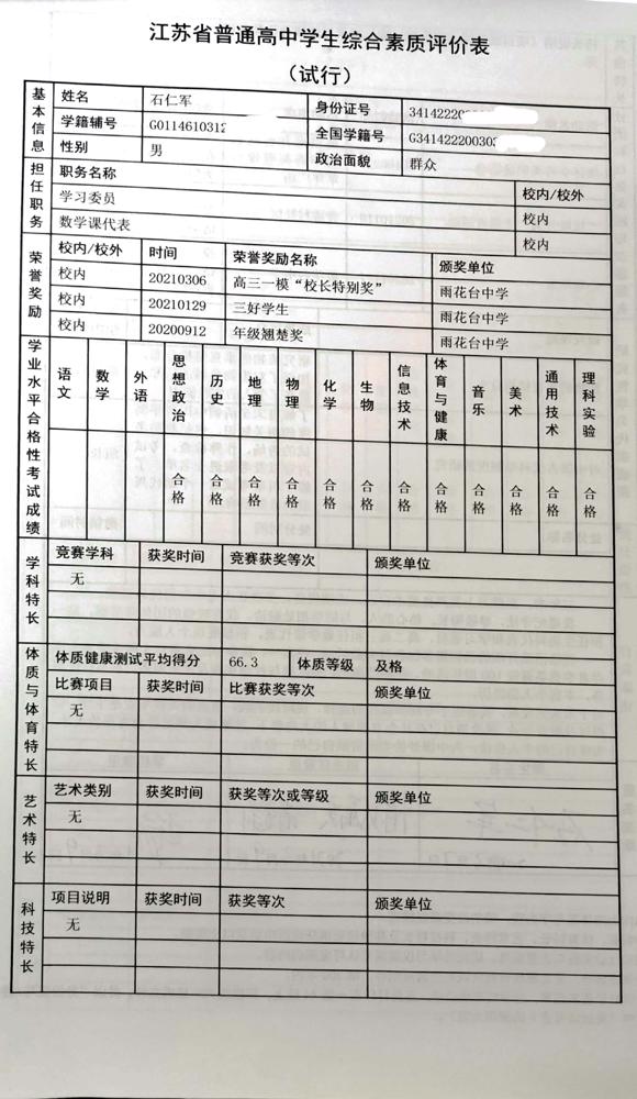2021年雨花台中学拟报考高校“强基计划”的“综合素质评价”内容已经经过审核,现公示如下。公示时间2021年5月19日-25日,如有异议,请向课程教学处张公法主任反映。具体考生名单及“综合素质评价表”公示如下: