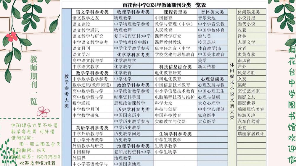 【读者服务】雨花台中学图书馆2024年教师期刊种类速览