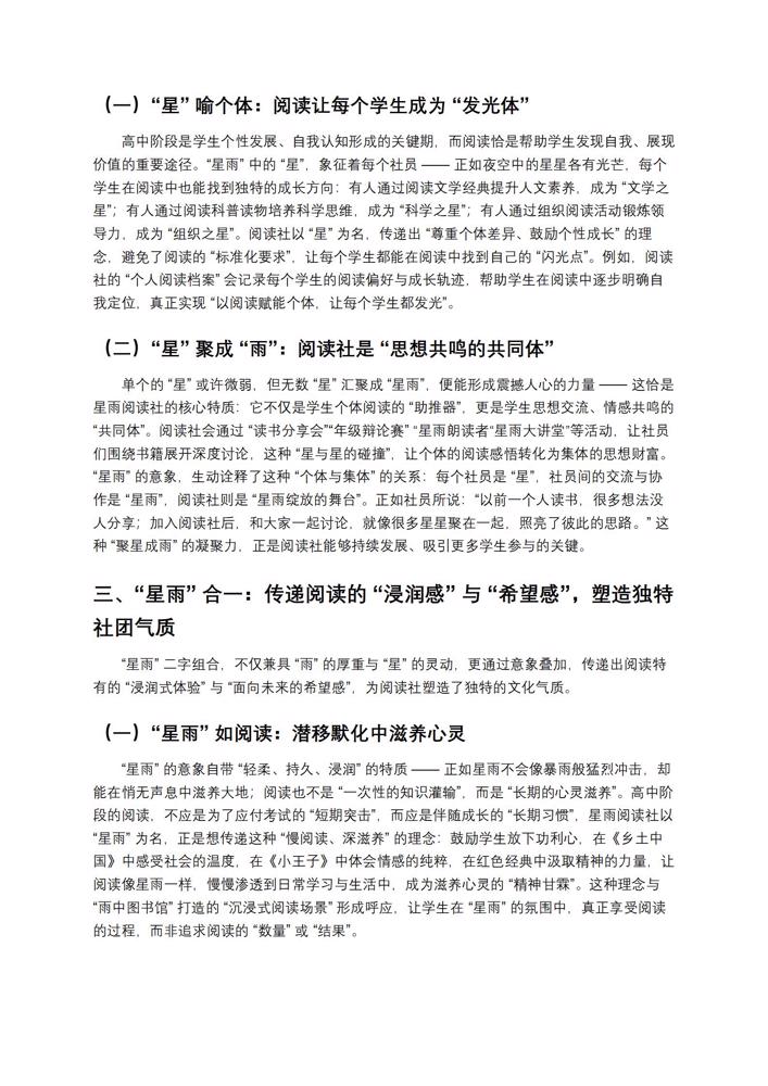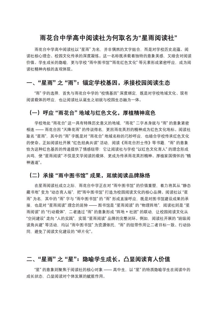 【星雨阅读】雨花台中学“星雨”学生阅读社简介