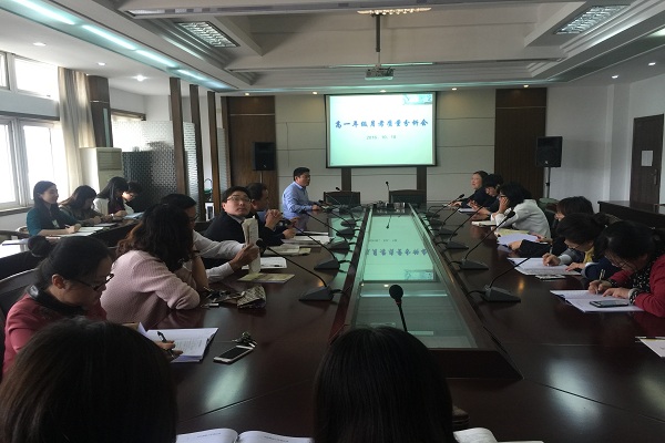 2016年10月18日星期二下午,南京市雨花台中学在第二会议室召开高一第一次月考成绩分析会。副书记陈金秀、高一年级主任张公法、各班班主任及语、数、外任课教师参加了会议。年级主任张公法主持会议。
