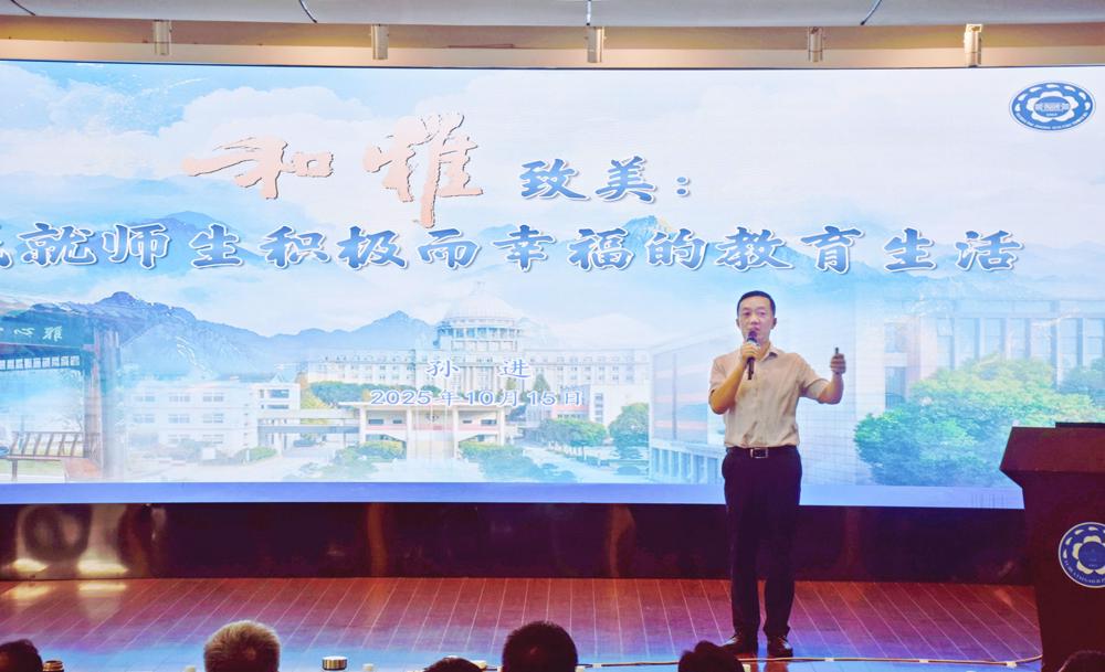 报告会在雨花台区教育局副局长王磊的欢迎辞中拉开帷幕。王磊副局长指出,“苏教名家” 培养工程是南京市推动基础教育高质量发展的重要平台,孙进校长作为雨花教育成长起来的优秀代表,其教育主张的凝练与实践,是雨花教育从 “有学上” 迈向 “上好学” 进程中的生动缩影。随后,我校孙进校长围绕《和雅致美:成就师生积极而幸福的教育生活》主题,全面系统阐释其教育理念体系与实践路径。他从 “和”“雅”“致”“美” 四字的词源解析入手,结合中华优秀传统文化 “中和正雅” 思想、西方哲学美学理论及马克思主义 “人的自由全面发展” 观点,构建起具有深厚哲学根基的教育价值体系;在内涵阐释中,他明确 “和” 强调与自然、社会、自我的调和共生,“雅” 指向外在形象与内在气韵的规范高雅,“致” 是动态达成过程,“美” 是感官与精神愉悦的属性,四者共同构成 “崇尚规范,调和关系,臻于美好境界” 的完整教育理念;实践层面,他详细介绍 “和雅致美” 理念的落地路径,包括构建 “物我相融的学习场境” 打造和雅空间、以雨花茶文化课程为代表开发 “跨界联结的融通课程”、建设 “立己达人的教师团队” 形成多维度教师发展体系、创新 “共情赋能的评价机制” 推出自我申报奖等方式,让师生在奋斗中体验成就感与幸福感,为新时代基础教育改革提供 “雨花样本”。