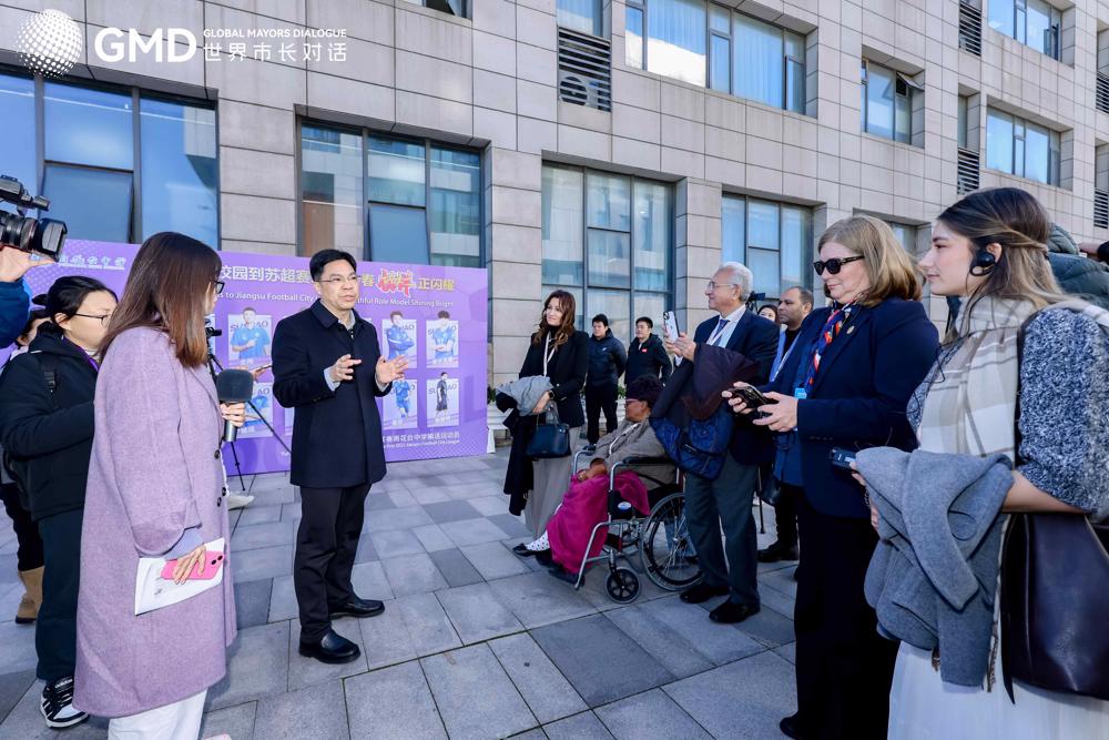 活动现场,“雨中校园到苏超赛场”主题展板吸引了代表团的目光。赵光辉书记向市长们如数家珍地介绍了戈伟、陈运涵、冯天烨等从学校走出的优秀足球人才,他们从校园绿茵起步,逐步走向更高竞技平台,成为在校学子的榜样标杆,赢得了市长们的由衷赞许。