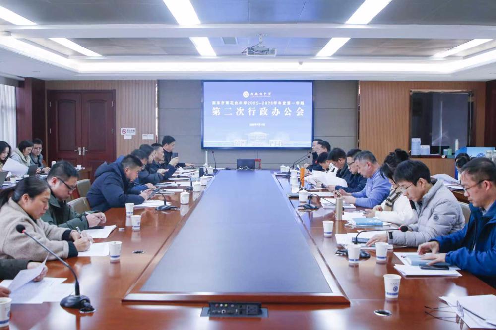 为扎实推动学期末各项重点工作圆满收官,科学谋划期末阶段工作节奏,2026年1月12日,我校召开2025-2026学年度第一学期第二次行政办公会。会议由孙进校长主持,两校区校级领导及全体中层干部与会。