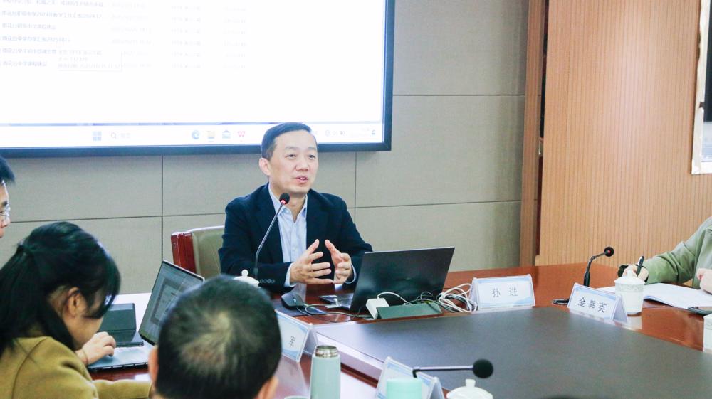 参观后,我校校长孙进代表学校向代表团的远道而来表示欢迎。孙校长全面介绍了我校的办学沿革和办学特色,并针对学校的品牌打造、课程建设与高质量发展和代表团作了深入交流。