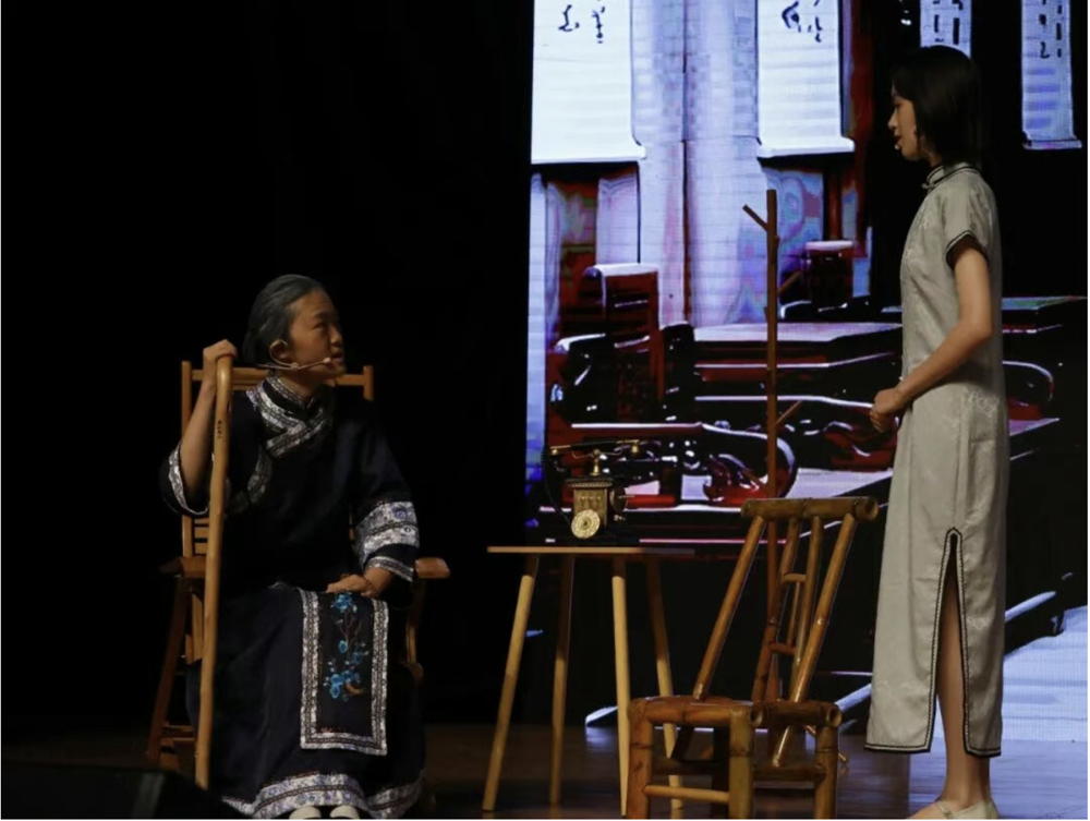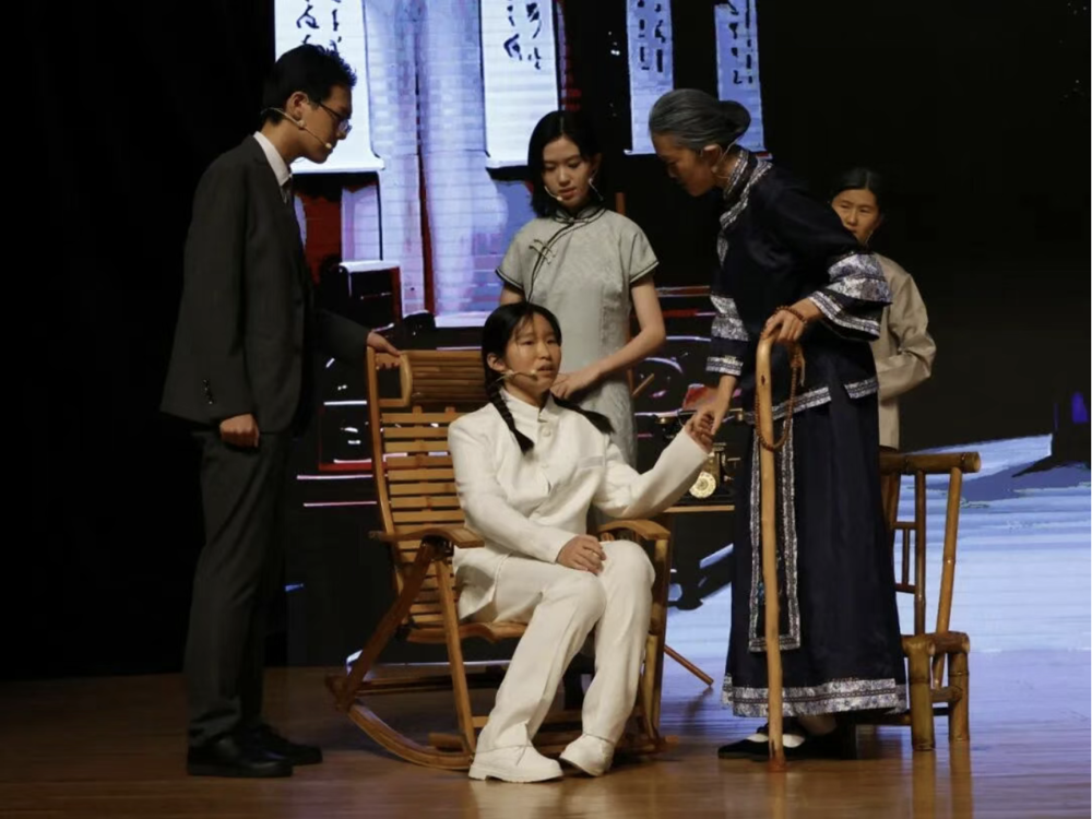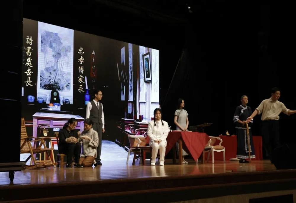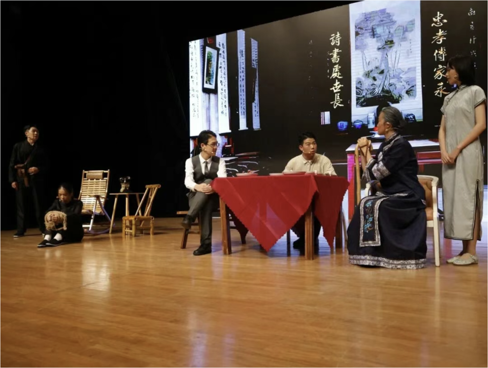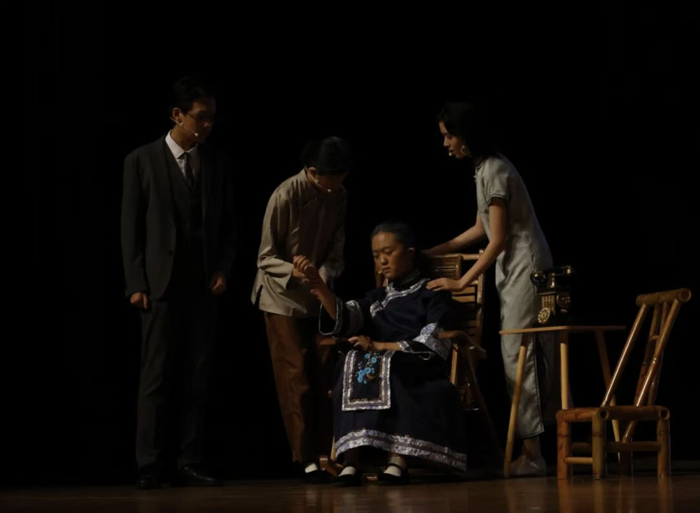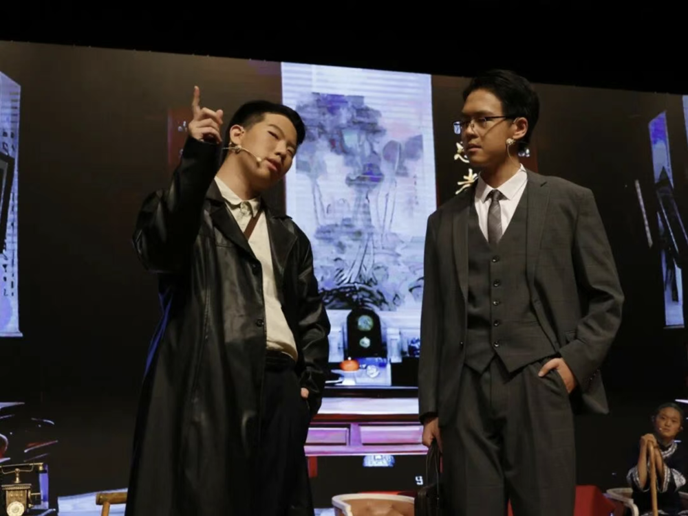 为还原舞台的历史质感,话剧团成员查阅大量史料,并利用每周社团课、以及公演前的可利用的空余时间连续排练,反复调整肢体语言与台词节奏,最终呈现出旧时代官僚贪腐与青年抗争的强烈戏剧冲突。这种对细节的极致追求,让舞台上的每一个眼神、每一句台词都凝结着对历史的敬畏 —— 国高话剧演员们以严谨的创作态度,将革命先辈的精神世界转化为可感的艺术表达,让历史在舞台上焕发新生。