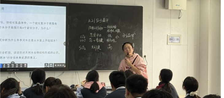 为进一步提升我校青年教师人工智能和学科教学的融合能力,探索在AI新时代下如何将其更好地融入高中化学课堂,我校化学组开展了主题为“基于AI的融创课堂”的青年教师课堂大赛。三位参赛教师以《分子晶体》这节内容进行同题异构,我校紫荆花路校区和岱山校区的老师们都参与了本次活动。