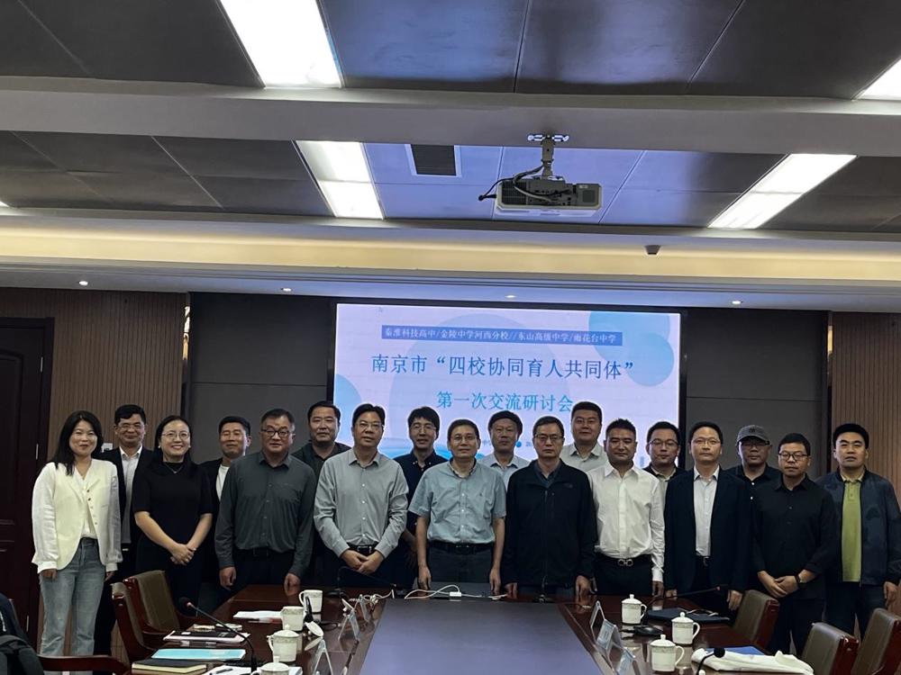 2025 年 10 月 14 日,南京市 “四校协同育人共同体” 第一次会议在雨花台中学国际部第二会议室召开。市教研室书记孙旭东、主任龙艳文,以及共同体成员校 —— 东山高级中学、金陵中学河西分校、秦淮科技高中、雨花台中学各分管校长和高一年级分管主任共同参会,会议由雨花台中学副校长刘进全主持。